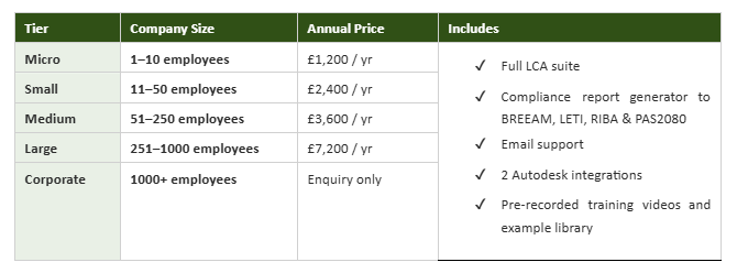 - Full access to structural and civil LCA modules